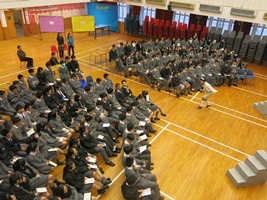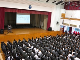 | 生命教育講座–「生肌展現,愛有明天」(2) | 三位同學參觀完立法會後,在午間集會向全校分享見聞 | 陳顥渟同學簡介立法會架構 | ||||||||||||||||||||||||