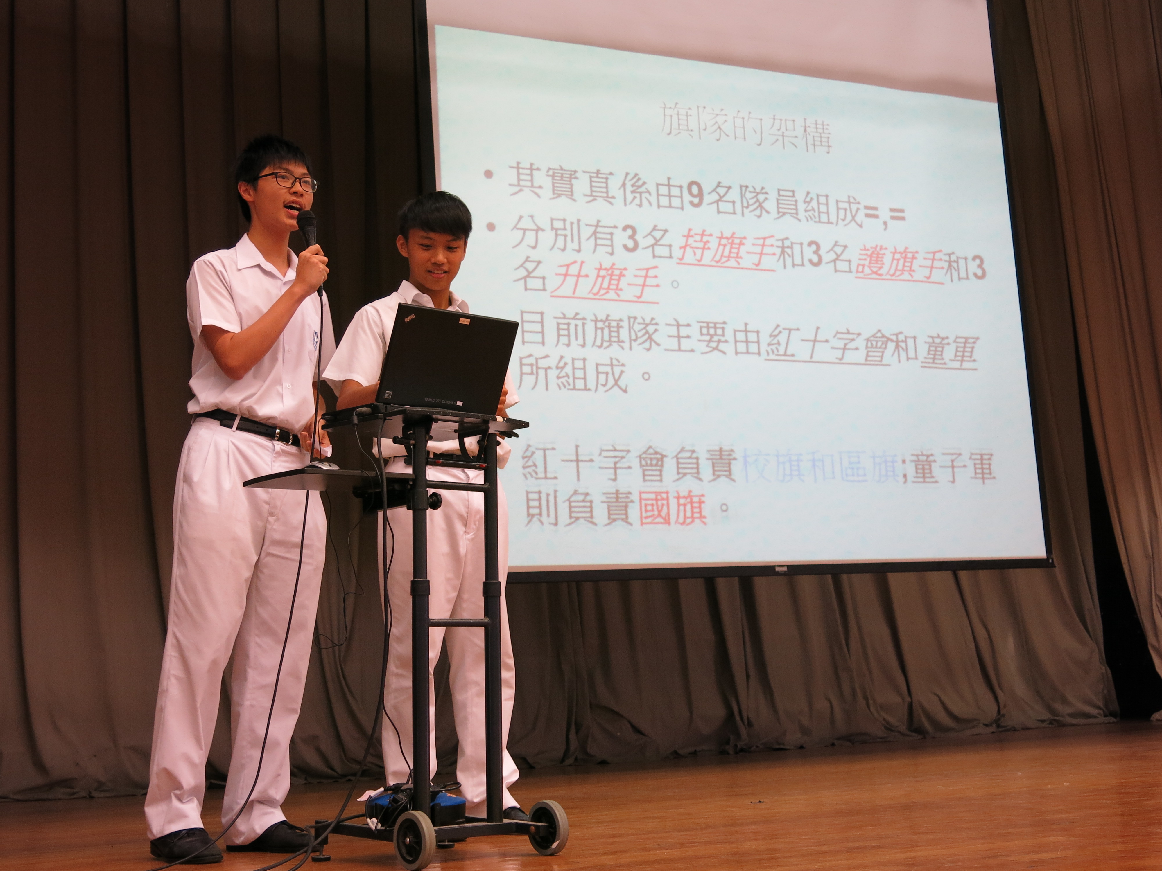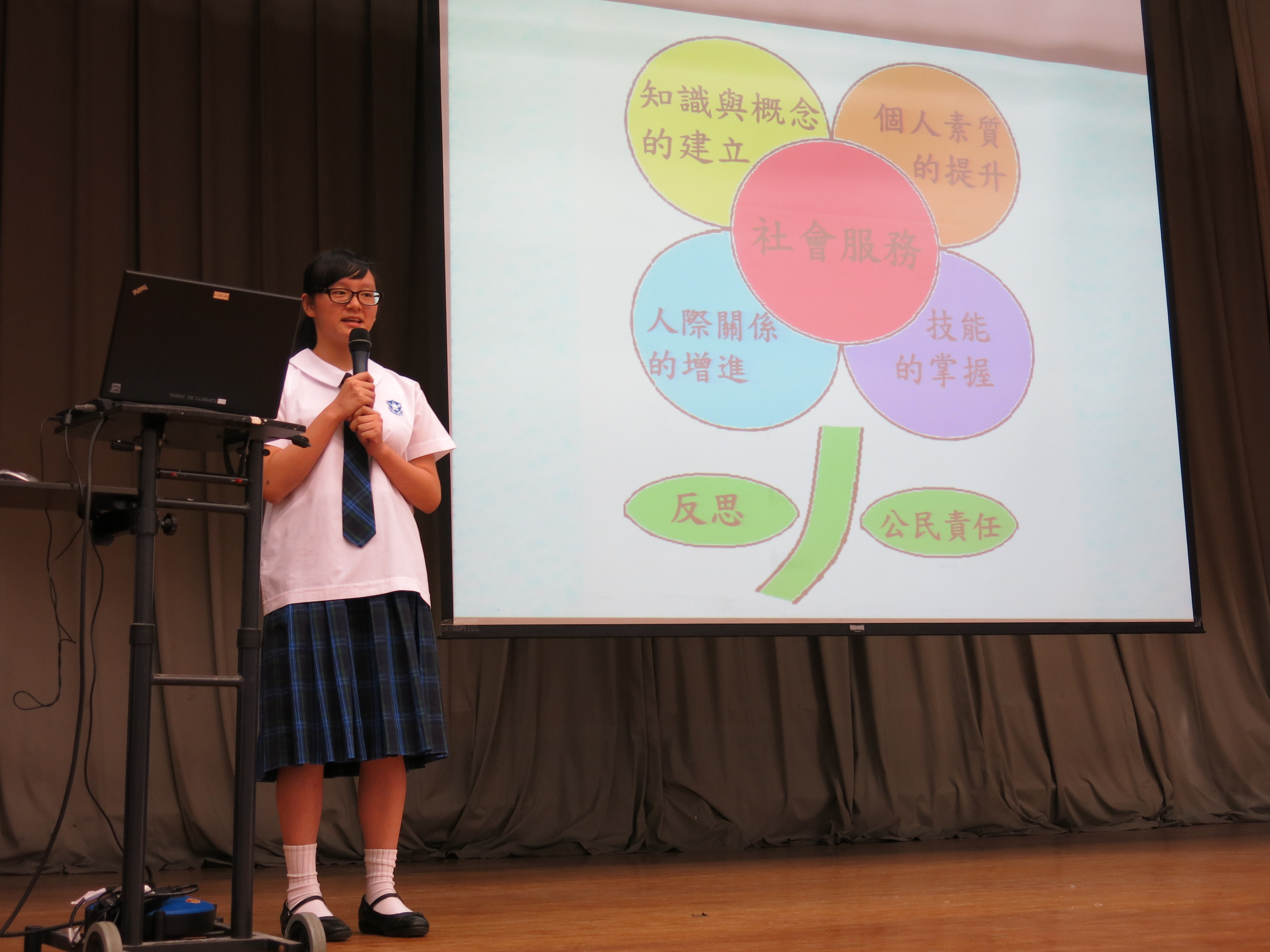 | 旗隊隊員在午會分享服務經驗 | 同學籲大家珍惜服務學習的機會 | 生命教育講座–「生肌展現,愛有明天」(1) | ||||||||||||||||||||||||