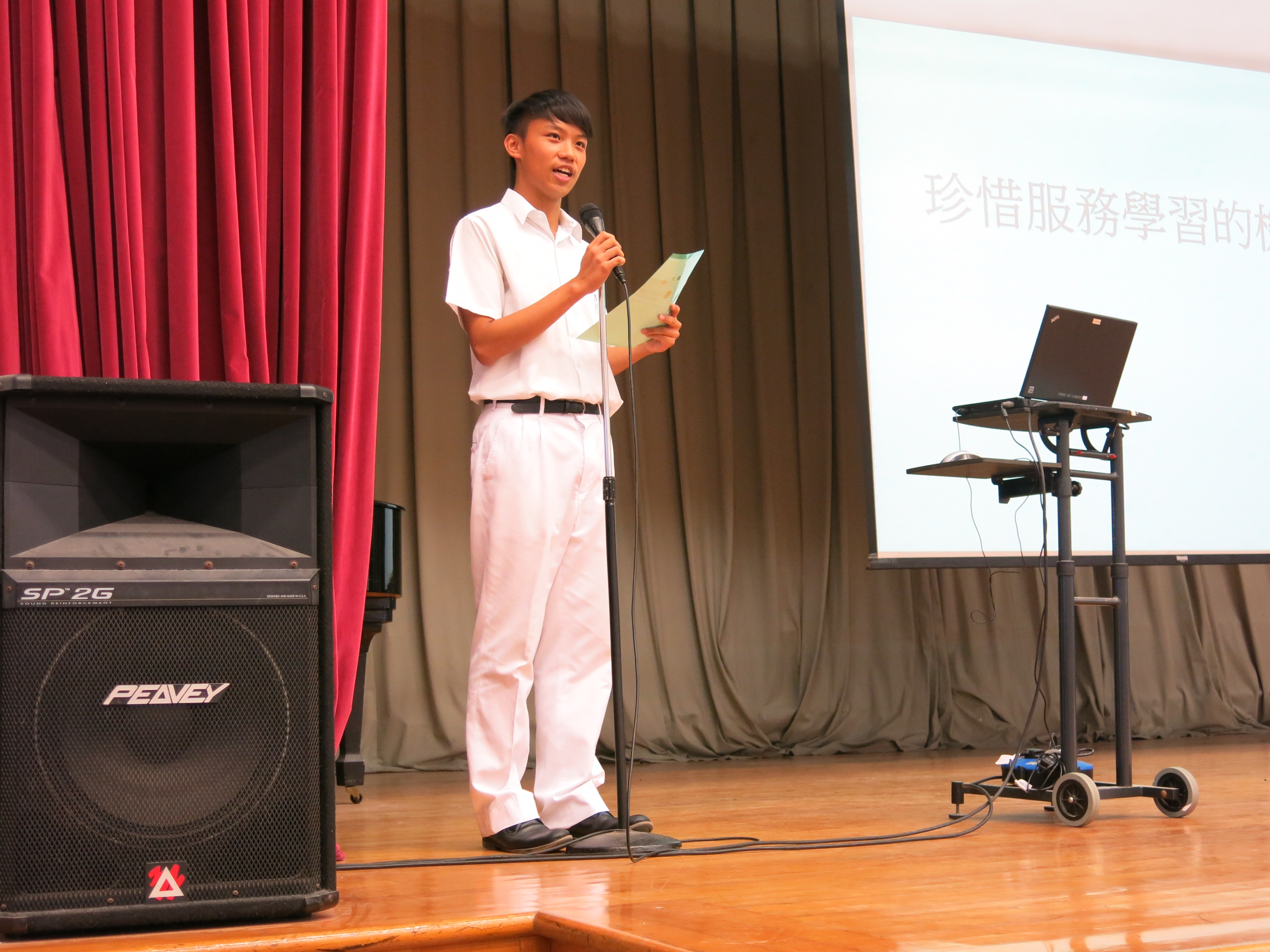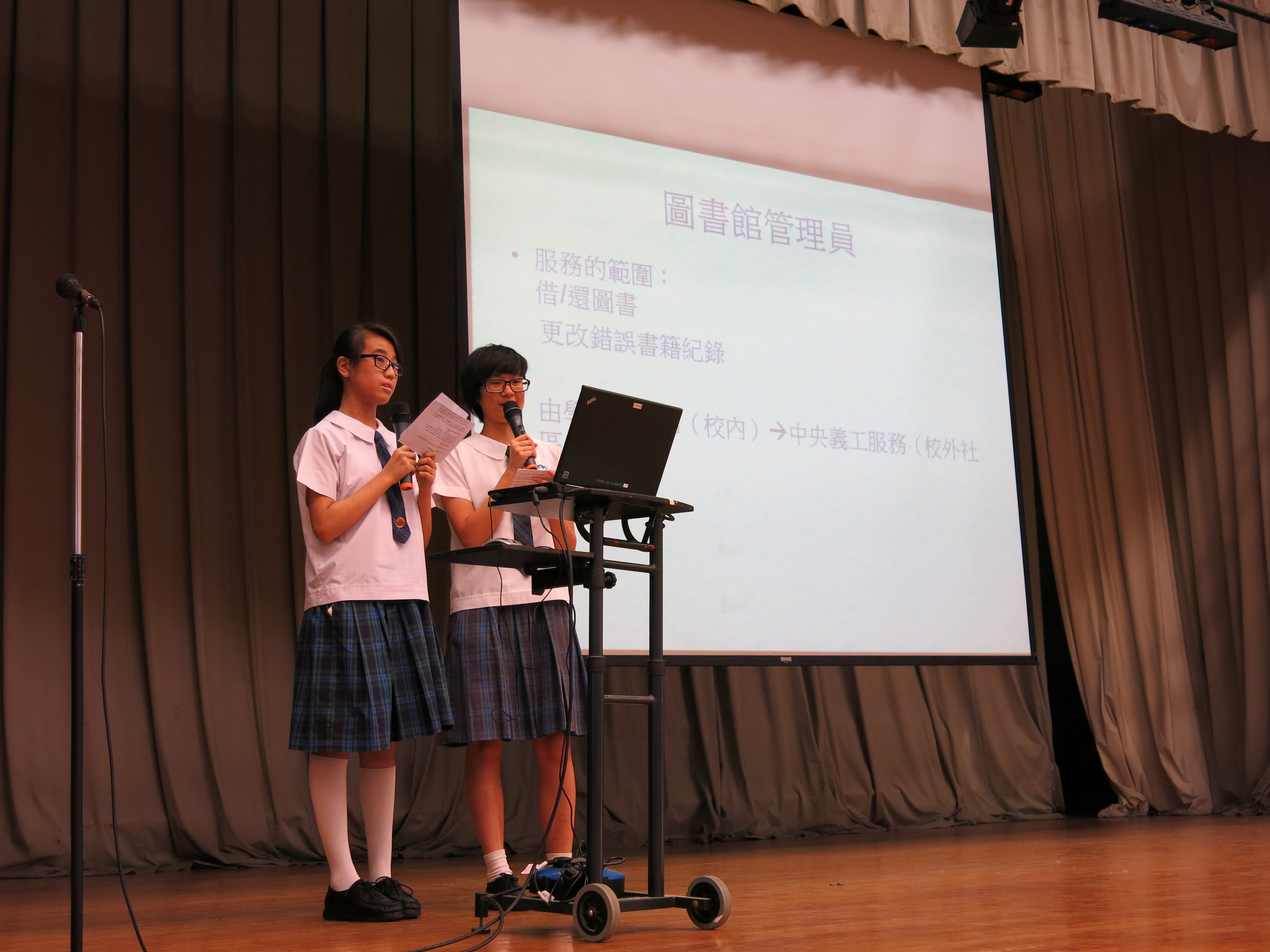 | 國旗下的講話(2) | 同學以「社會服務」為題主持午會 | 圖書館理員在午會分享服務經驗 | ||||||||||||||||||||||||